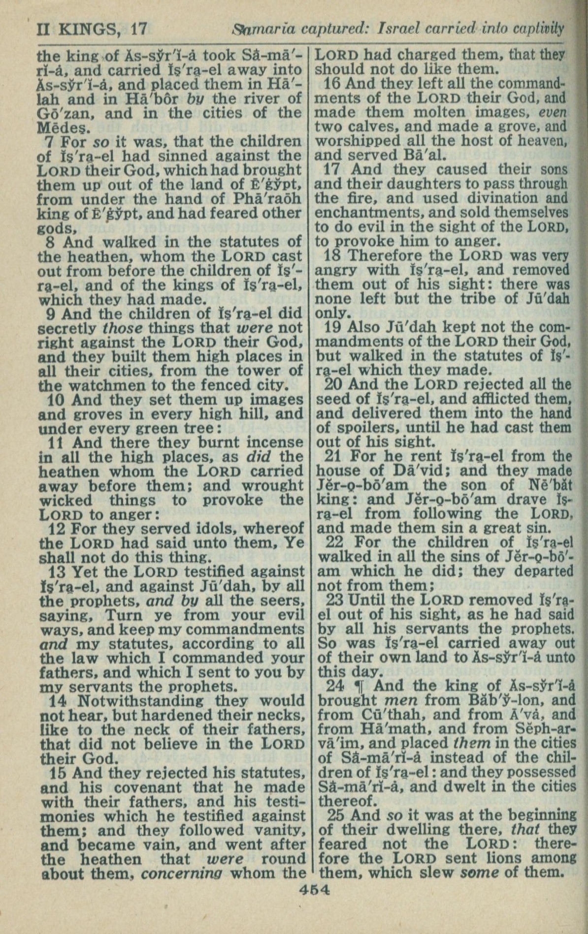 1946年King James Version 列王纪下 17 章 6 节到 17 章 25 节