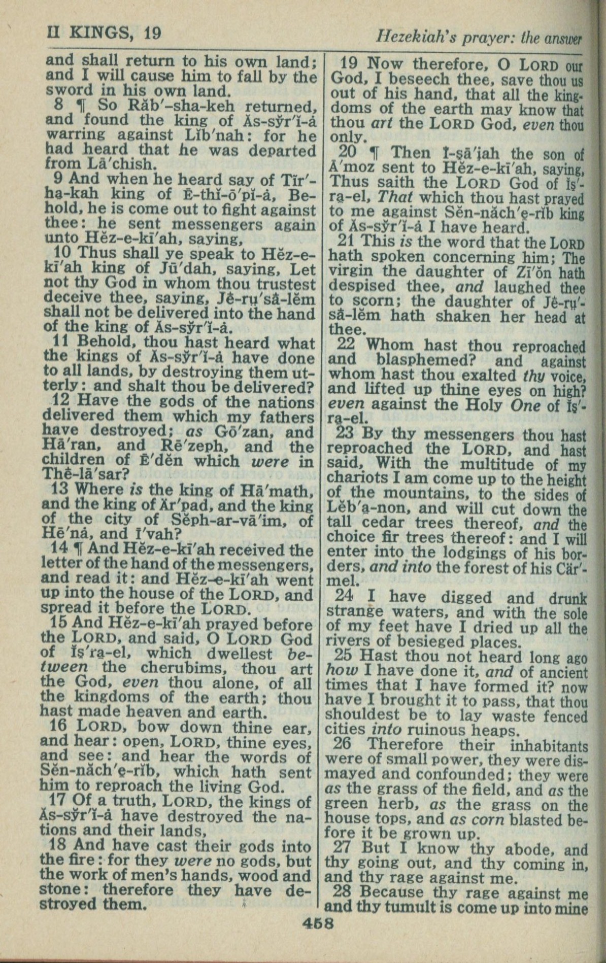 1946年King James Version 列王纪下 19 章 8 节到 19 章 28 节
