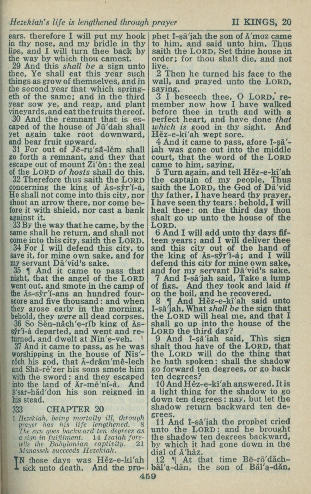 1946年King James Version 列王纪下 19 章 29 节到 20 章 12 节