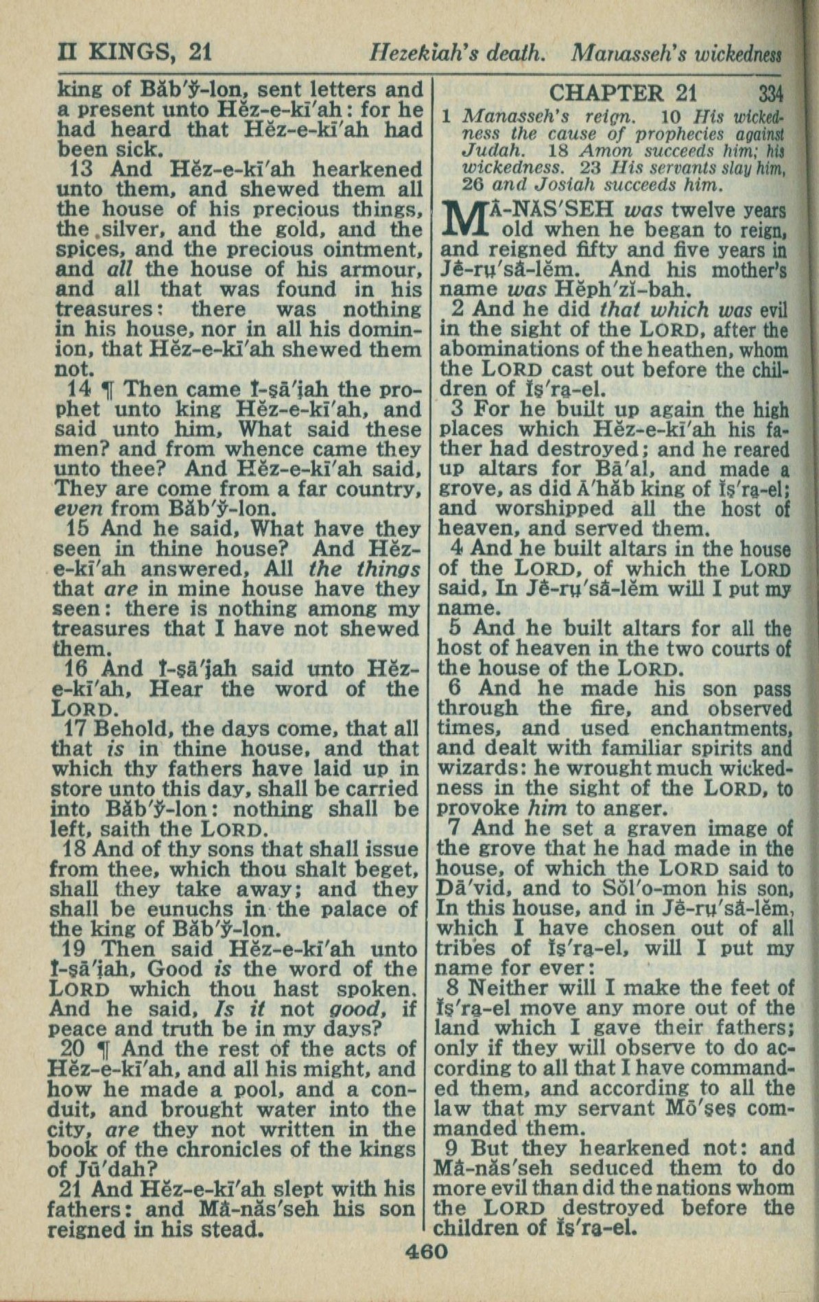 1946年King James Version 列王纪下 20 章 13 节到 21 章 9 节