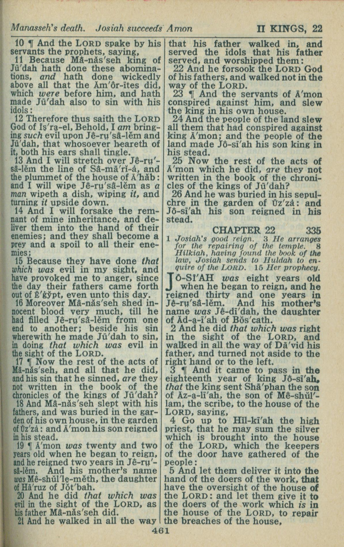 1946年King James Version 列王纪下 21 章 10 节到 22 章 5 节