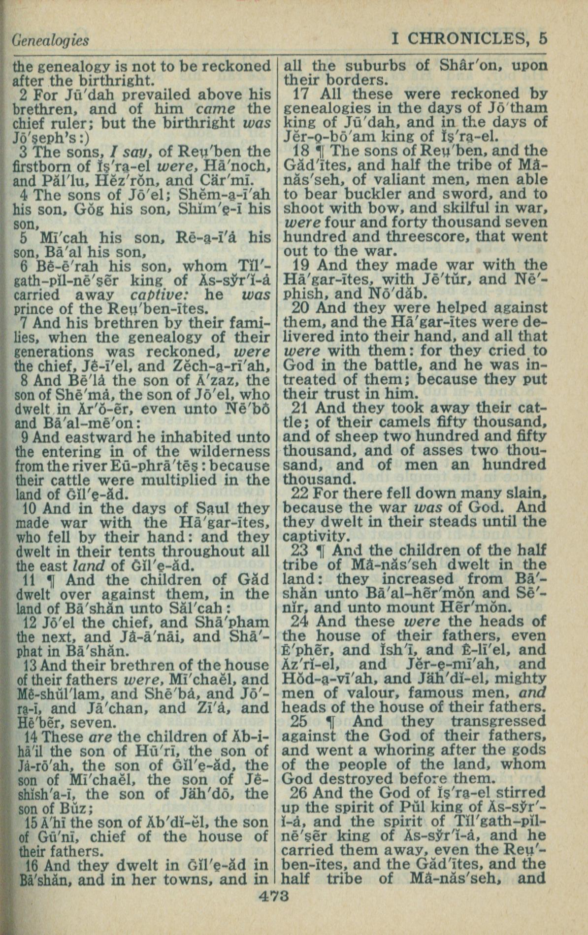 1946年King James Version 历代志上 5 章 2 节到 5 章 26 节