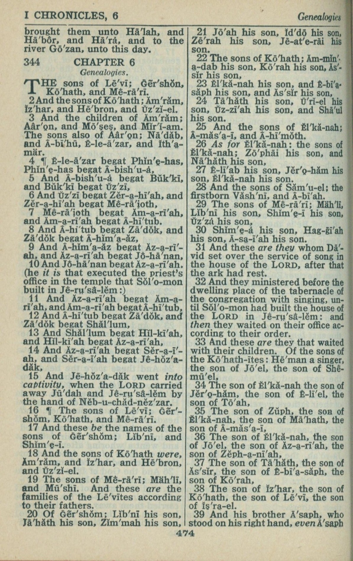 1946年King James Version 历代志上 6 章 1 节到 6 章 39 节
