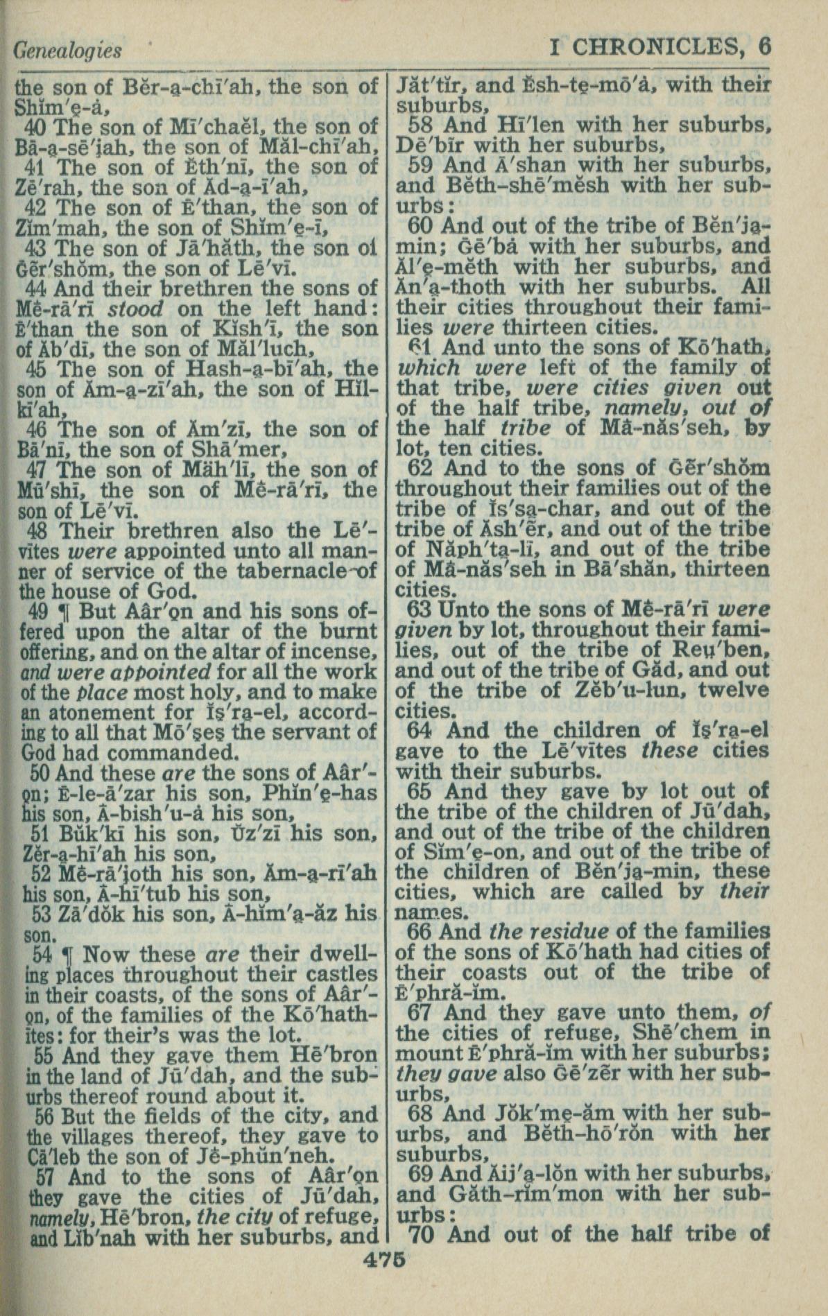 1946年King James Version 历代志上 6 章 40 节到 6 章 70 节