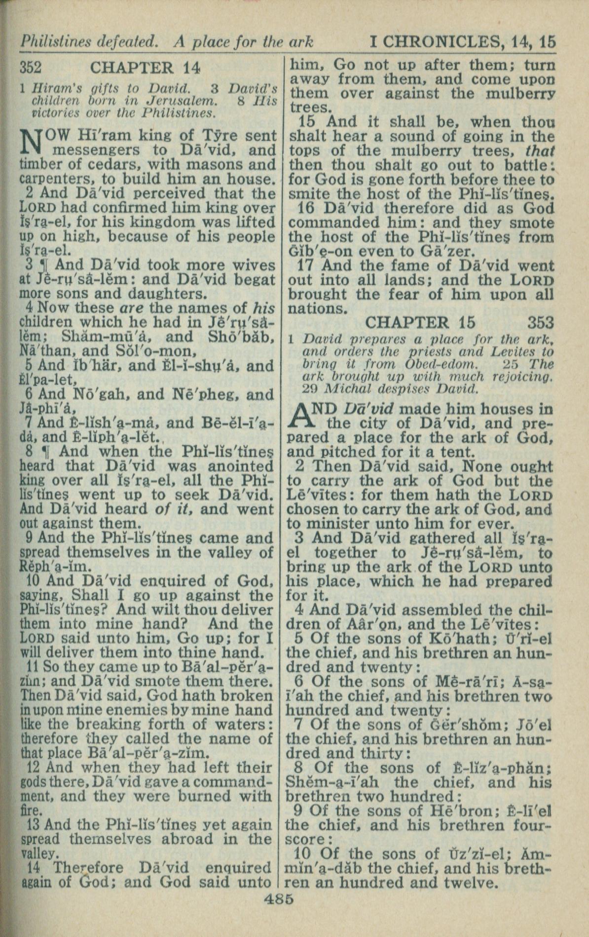 1946年King James Version 历代志上 14 章 1 节到 15 章 10 节