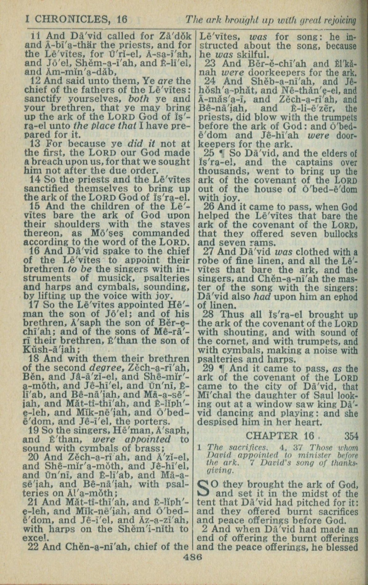 1946年King James Version 历代志上 15 章 11 节到 16 章 2 节