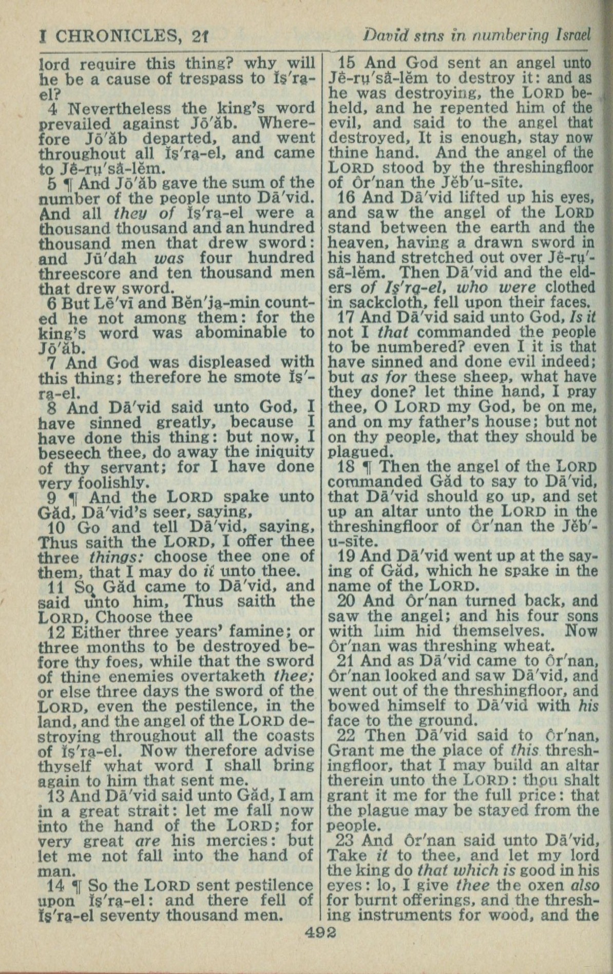 1946年King James Version 历代志上 21 章 4 节到 21 章 23 节