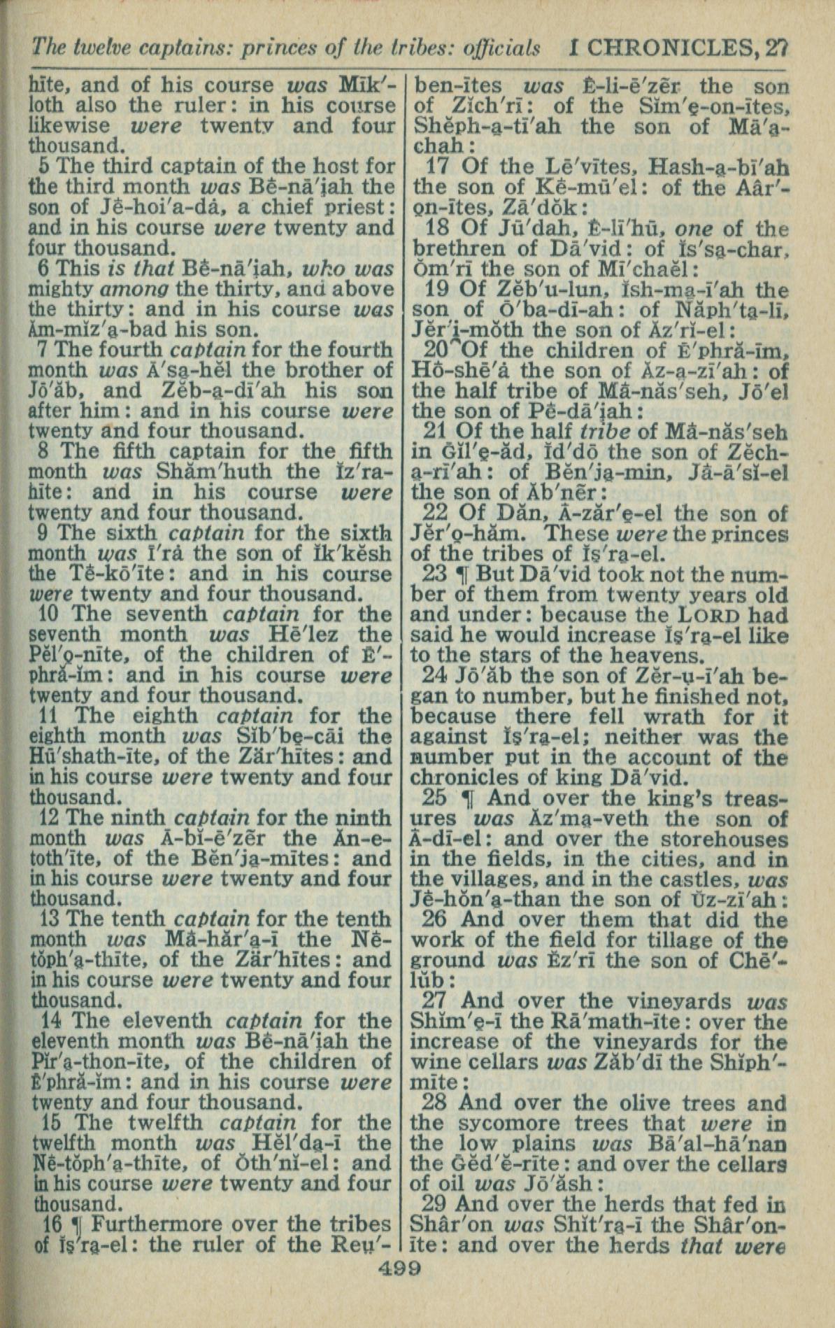 1946年King James Version 历代志上 27 章 5 节到 27 章 29 节