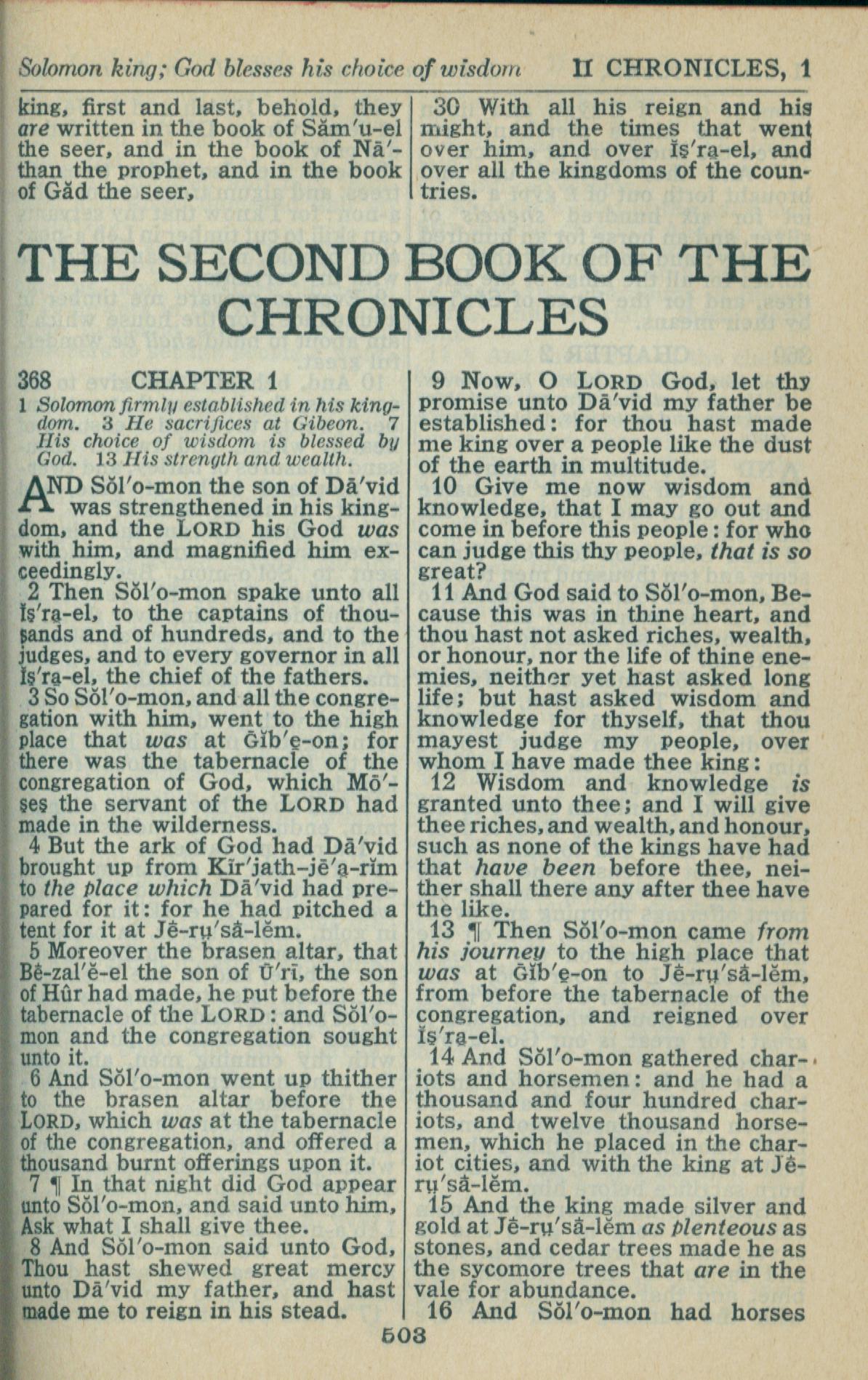 1946年King James Version 历代志下 1 章 1 节到 1 章 16 节