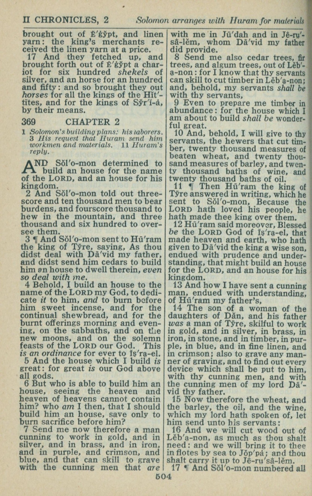 1946年King James Version 历代志下 1 章 17 节到 2 章 16 节