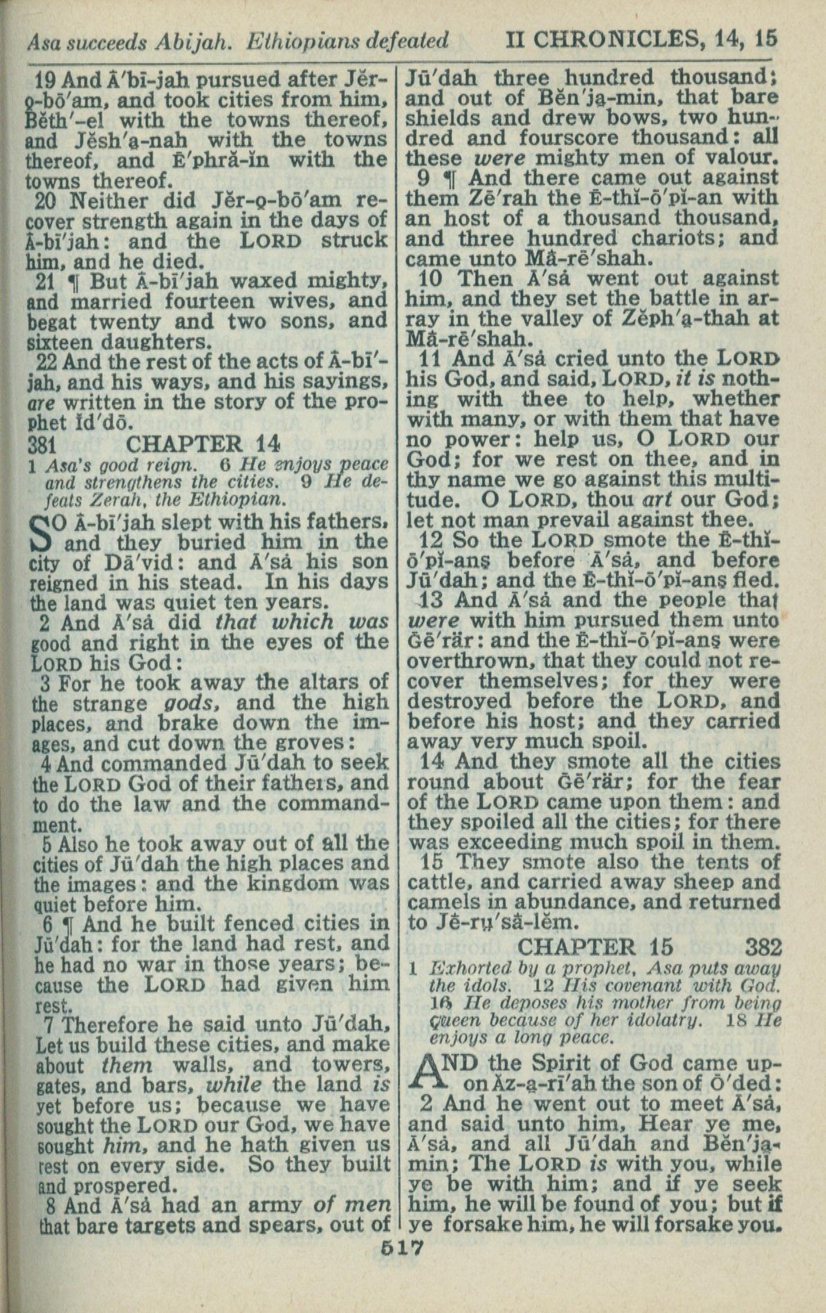 1946年King James Version 历代志下 13 章 19 节到 15 章 2 节