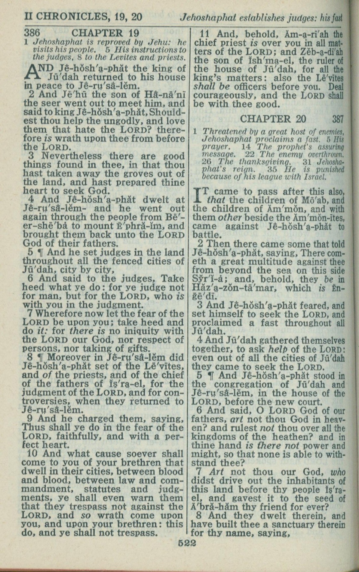 1946年King James Version 历代志下 19 章 1 节到 20 章 8 节