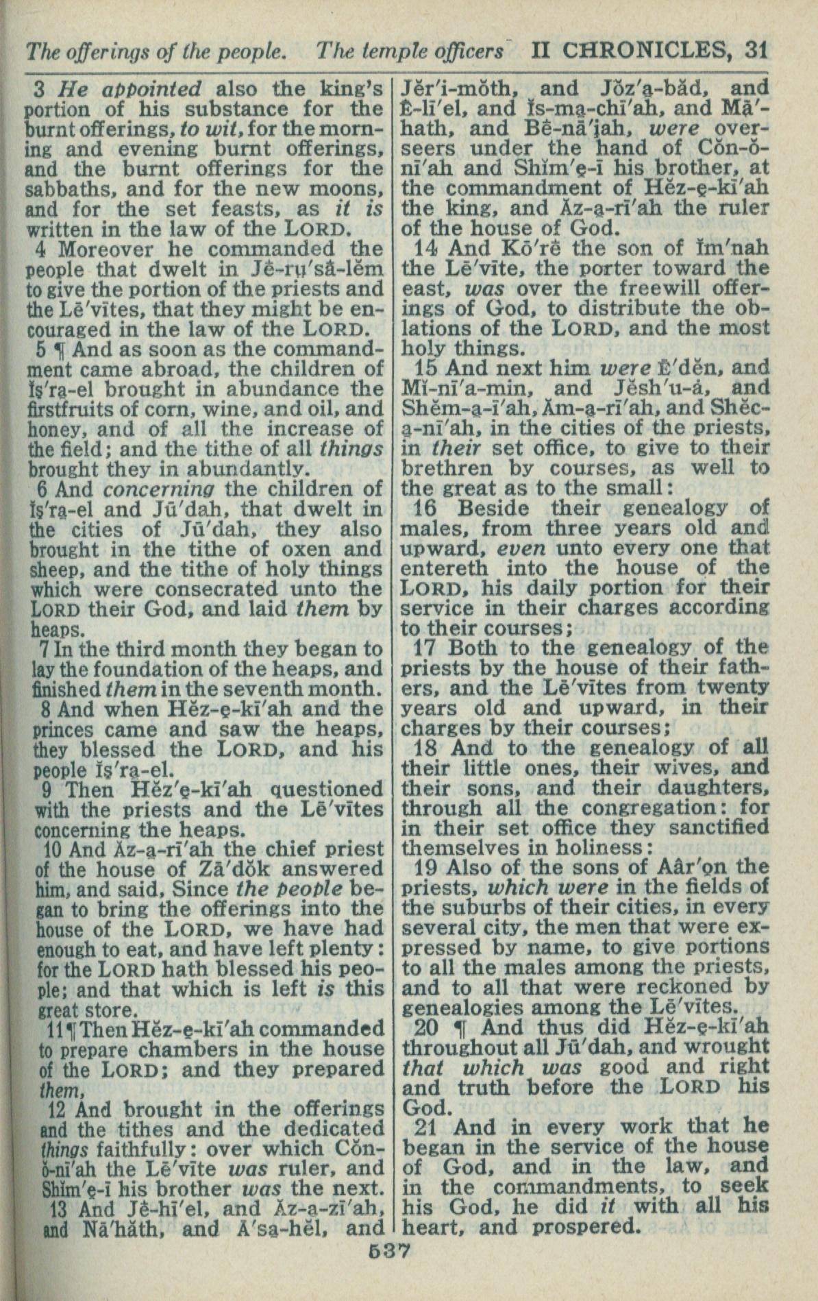 1946年King James Version 历代志下 31 章 3 节到 31 章 21 节