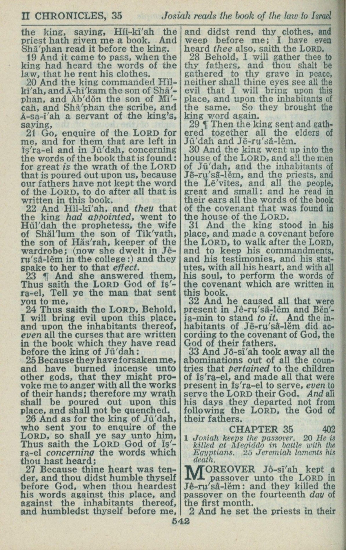1946年King James Version 历代志下 34 章 19 节到 35 章 2 节