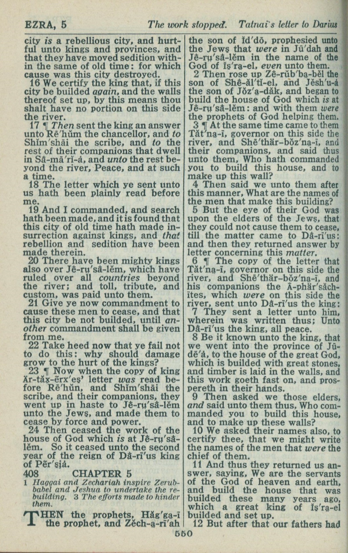 1946年King James Version 以斯拉记 4 章 16 节到 5 章 12 节