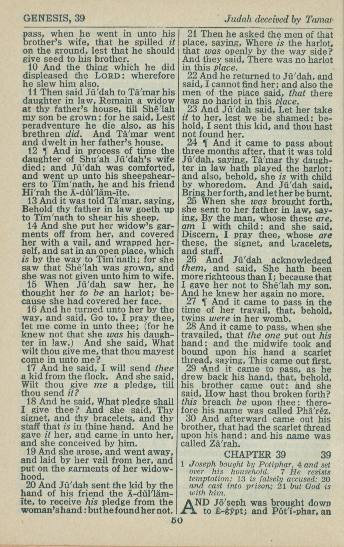 1946年King James Version 创世记 38 章 10 节到 39 章 1 节