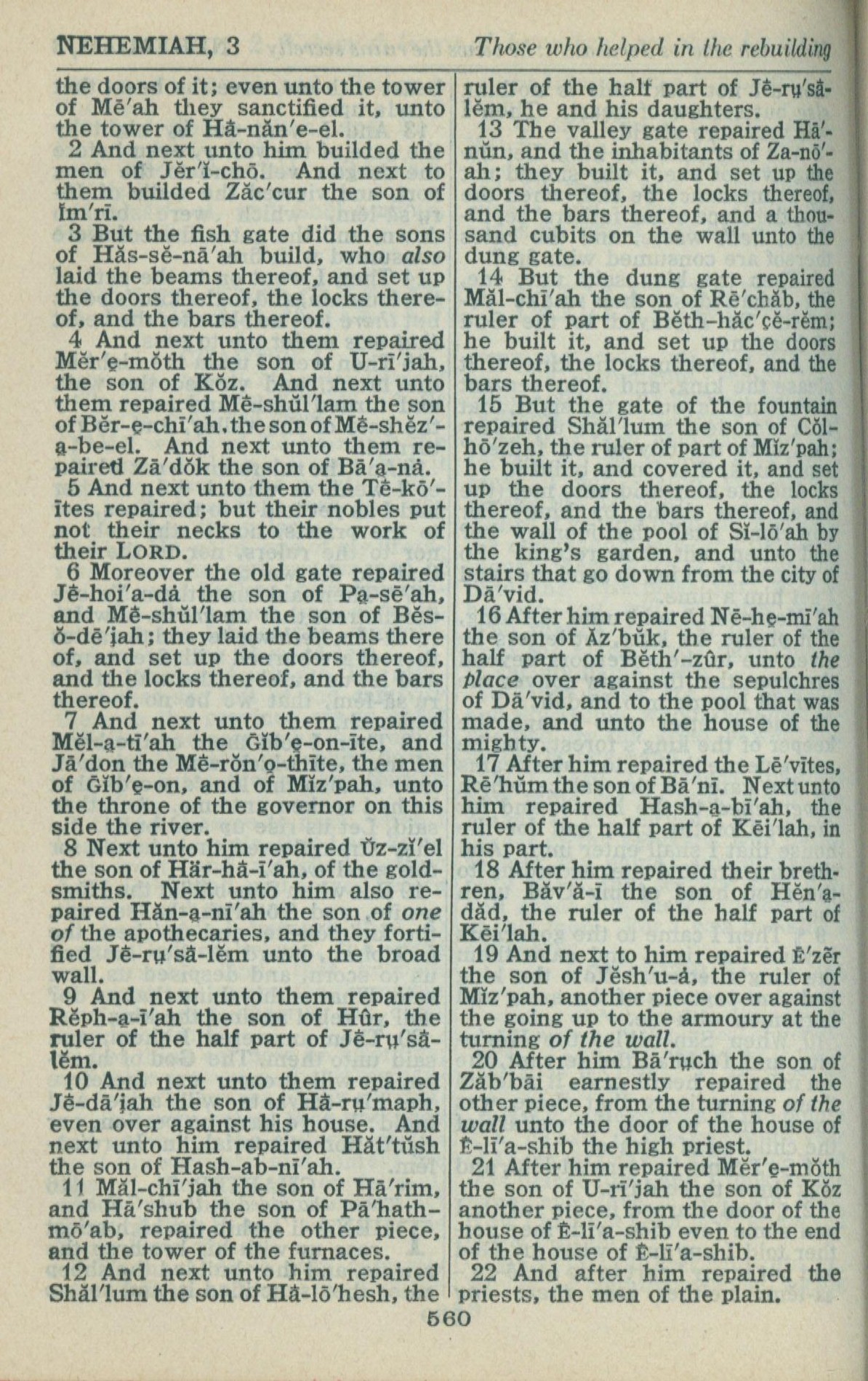1946年King James Version 尼希米记 3 章 2 节到 3 章 22 节