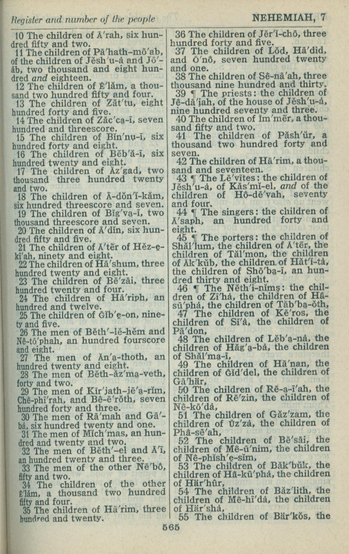 1946年King James Version 尼希米记 7 章 10 节到 7 章 55 节