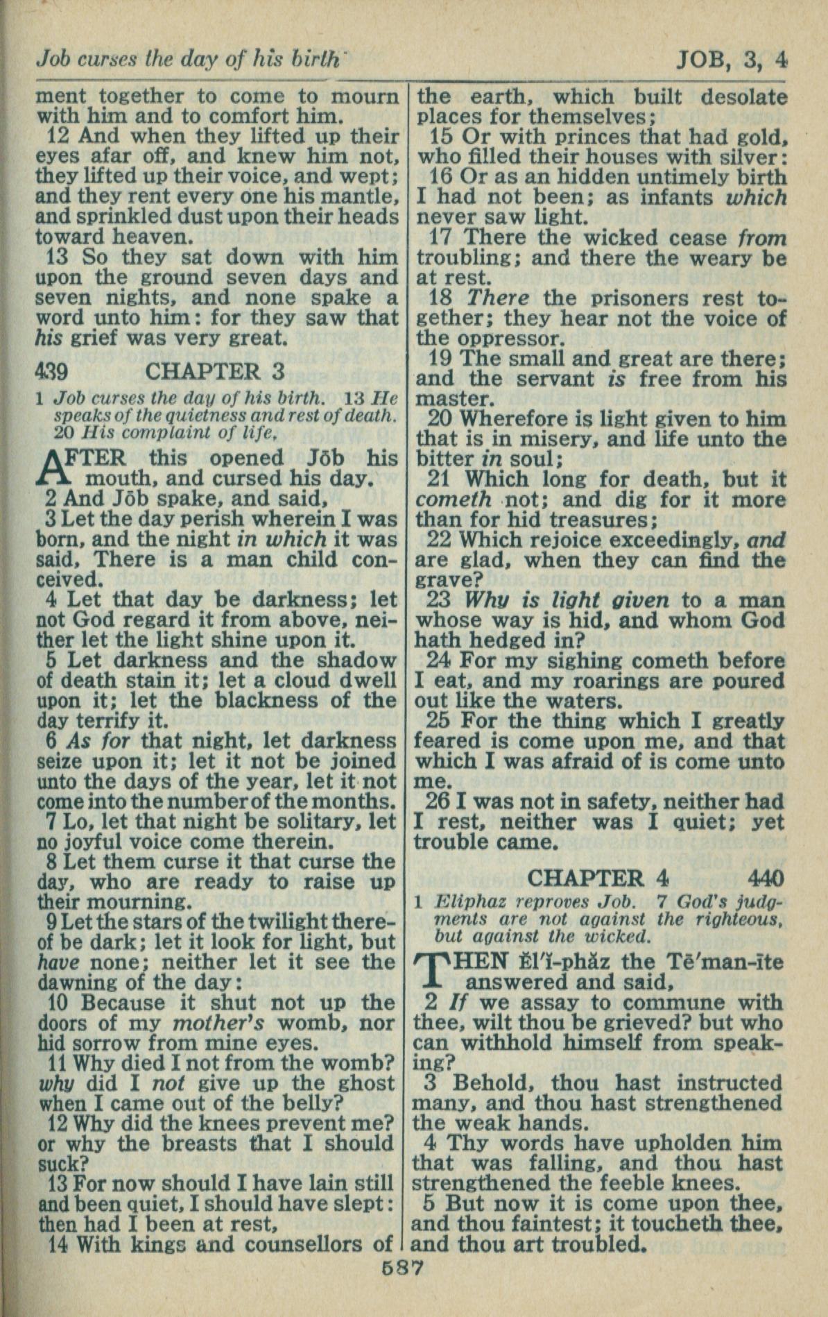 1946年King James Version 约伯记 2 章 12 节到 4 章 5 节