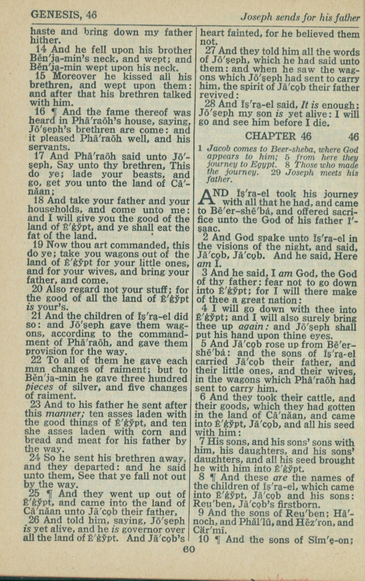 1946年King James Version 创世记 45 章 14 节到 46 章 10 节