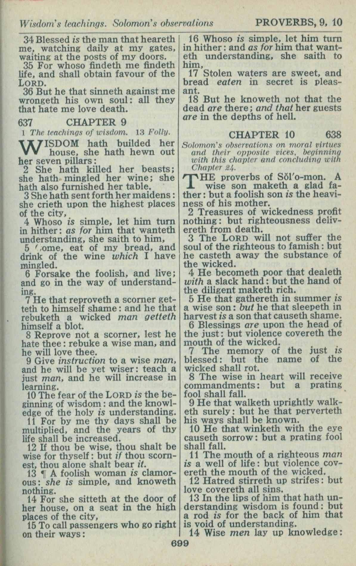 1946年King James Version 箴言 8 章 34 节到 10 章 14 节