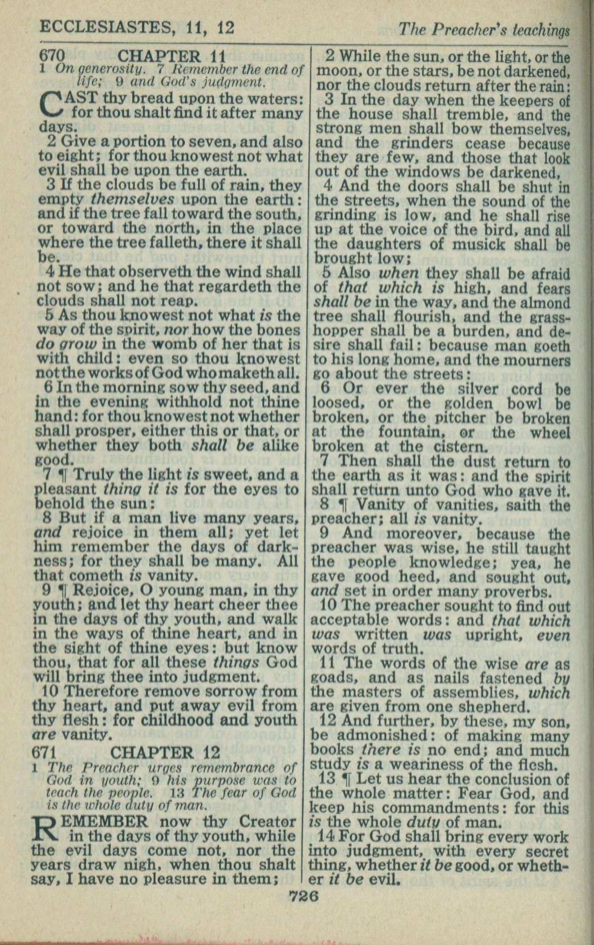 1946年King James Version 传道书 11 章 1 节到 12 章 14 节