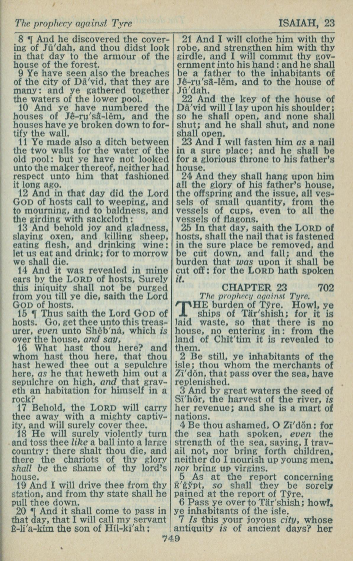 1946年King James Version 以赛亚书 22 章 8 节到 23 章 7 节