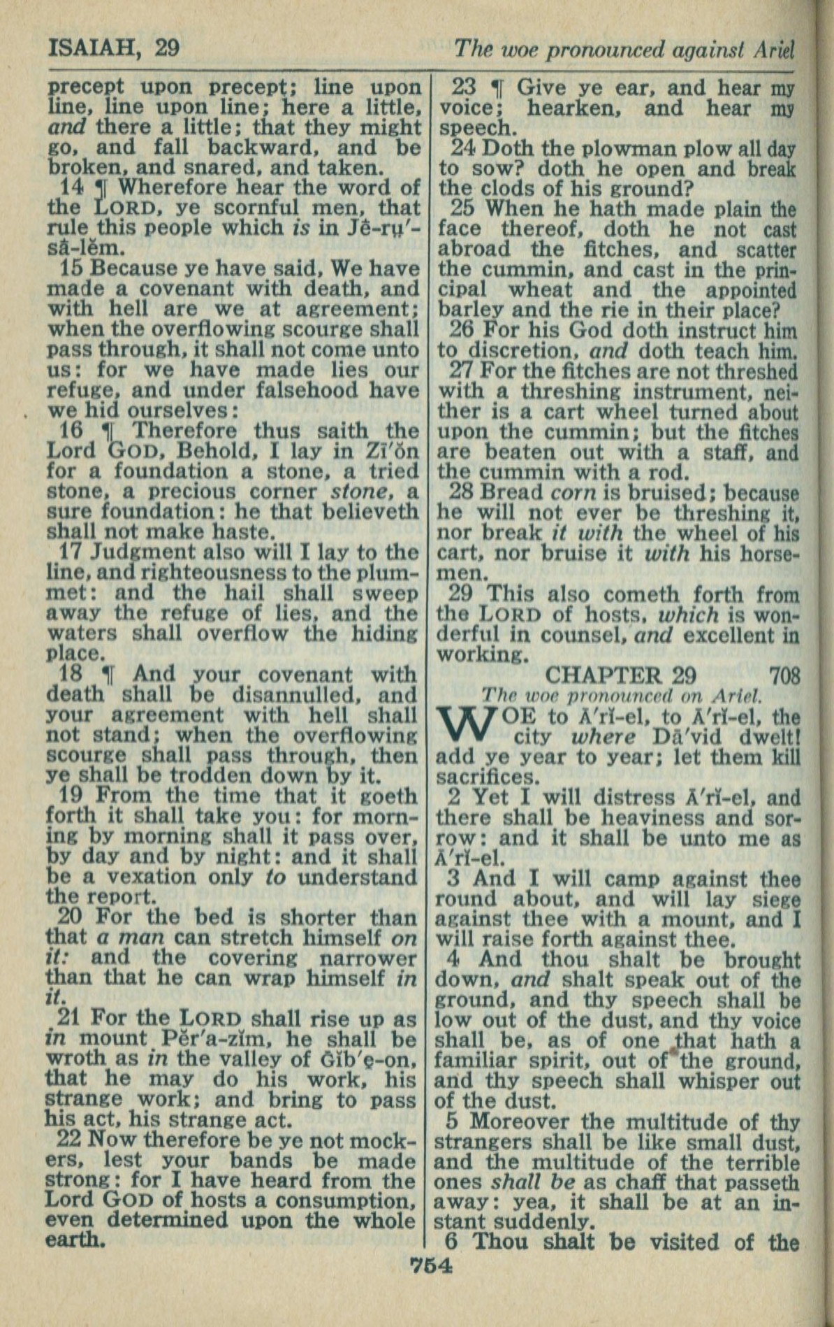 1946年King James Version 以赛亚书 28 章 14 节到 29 章 6 节