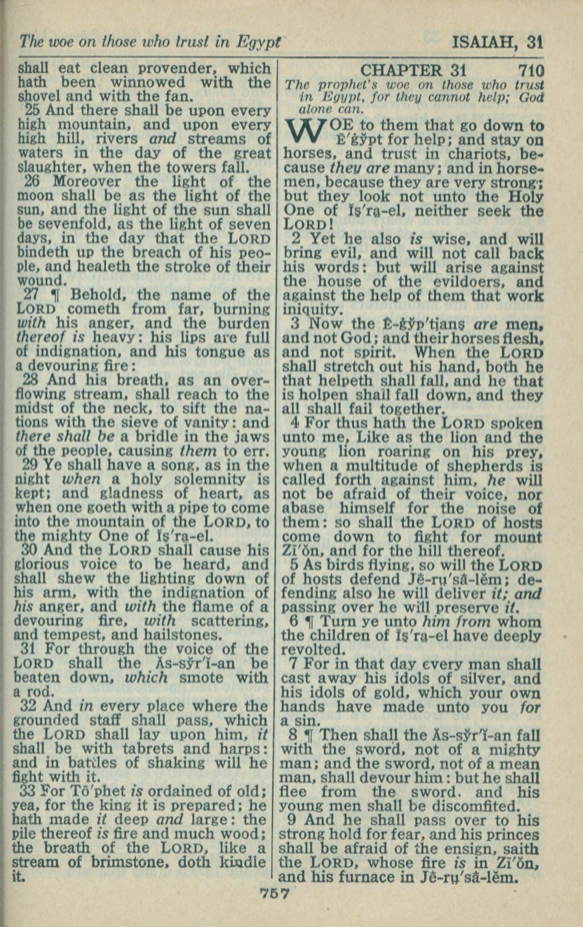 1946年King James Version 以赛亚书 30 章 25 节到 31 章 9 节