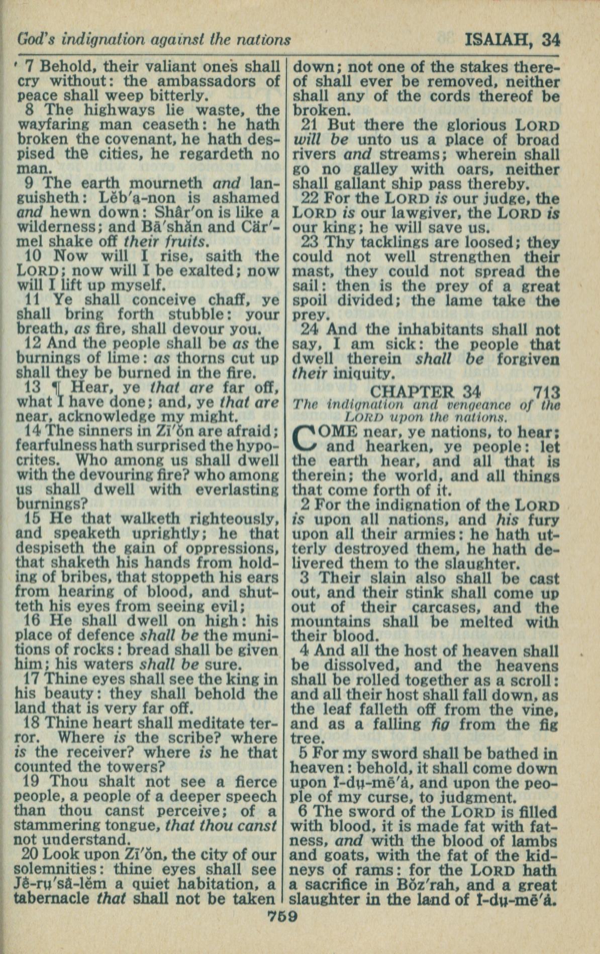 1946年King James Version 以赛亚书 33 章 7 节到 34 章 6 节