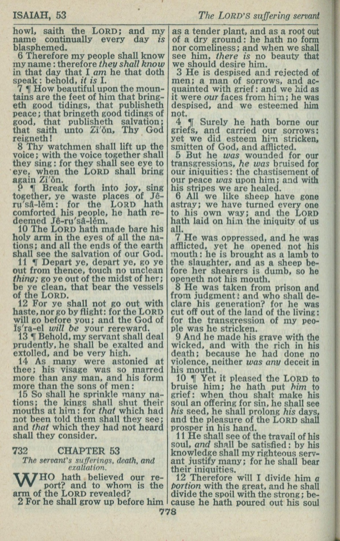 1946年King James Version 以赛亚书 52 章 6 节到 53 章 12 节