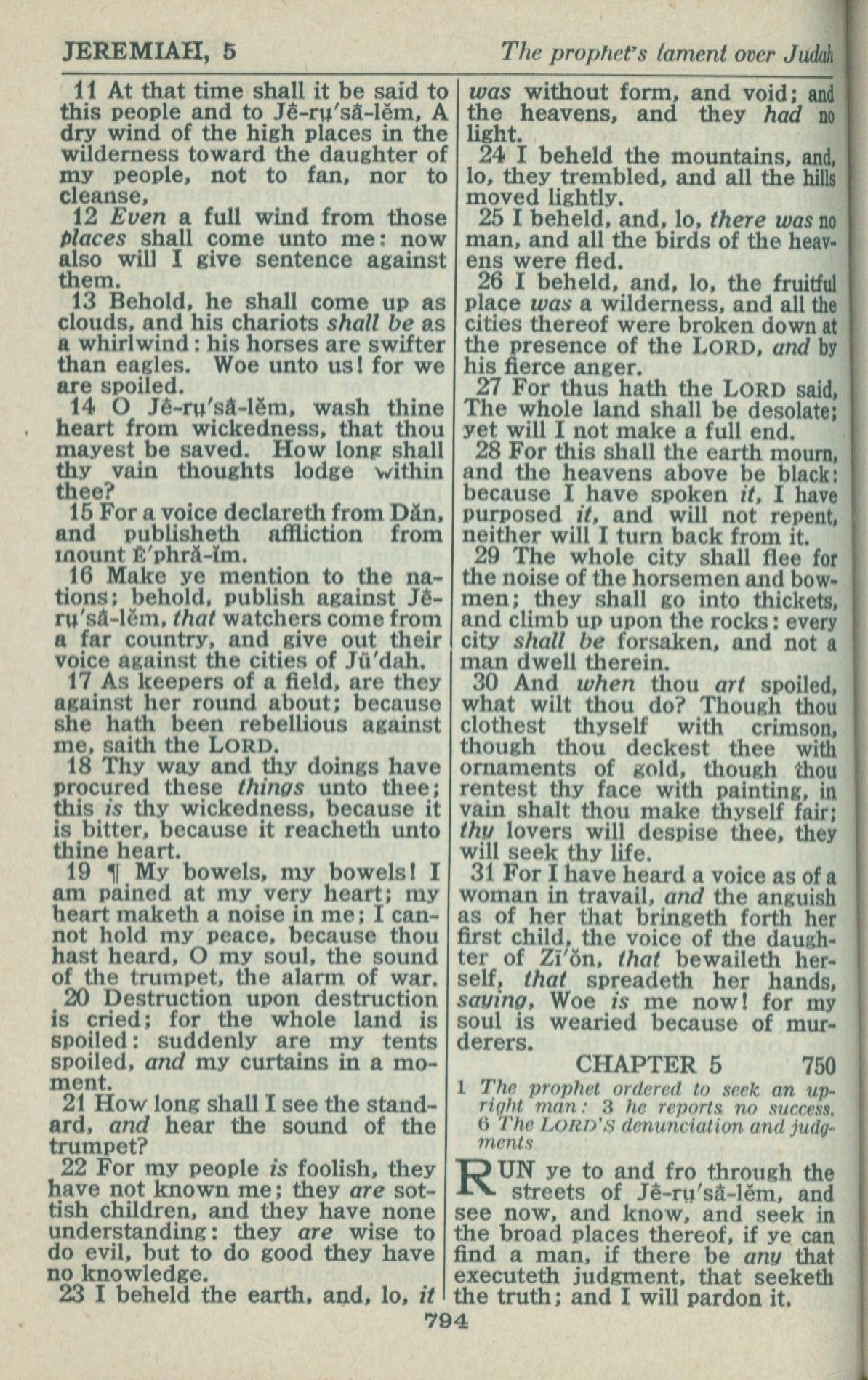 1946年King James Version 耶利米书 4 章 11 节到 5 章 1 节
