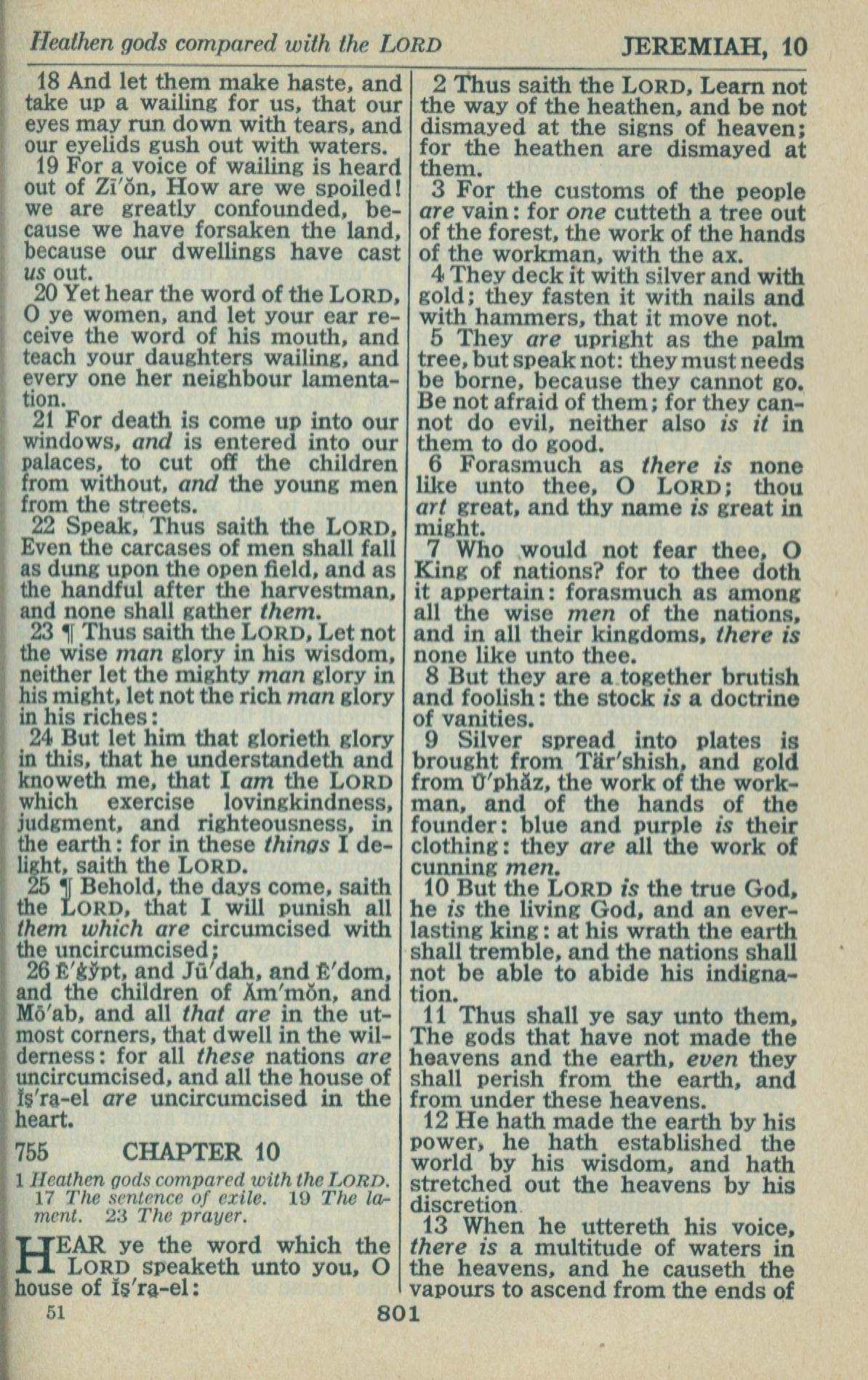 1946年King James Version 耶利米书 9 章 18 节到 10 章 13 节