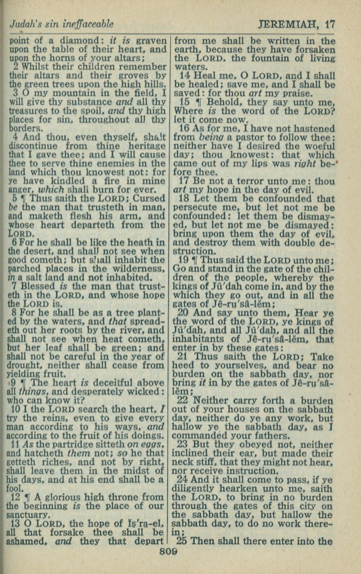 1946年King James Version 耶利米书 17 章 2 节到 17 章 25 节