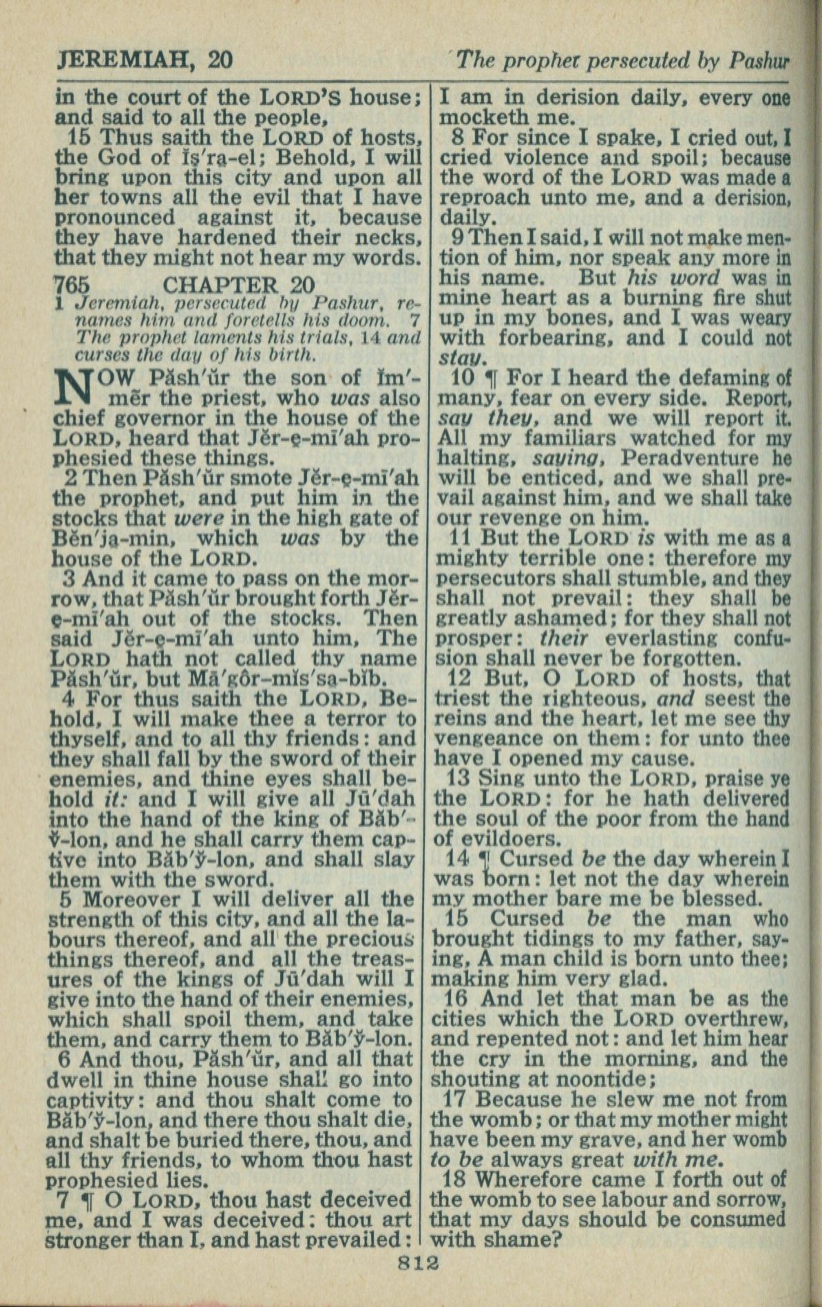 1946年King James Version 耶利米书 19 章 15 节到 20 章 18 节