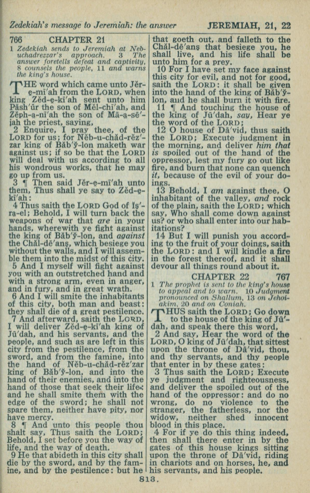 1946年King James Version 耶利米书 21 章 1 节到 22 章 4 节