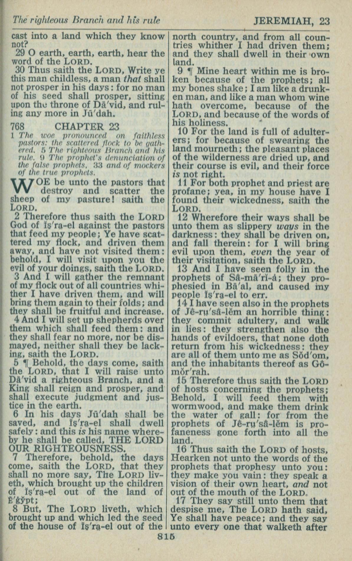 1946年King James Version 耶利米书 22 章 29 节到 23 章 17 节