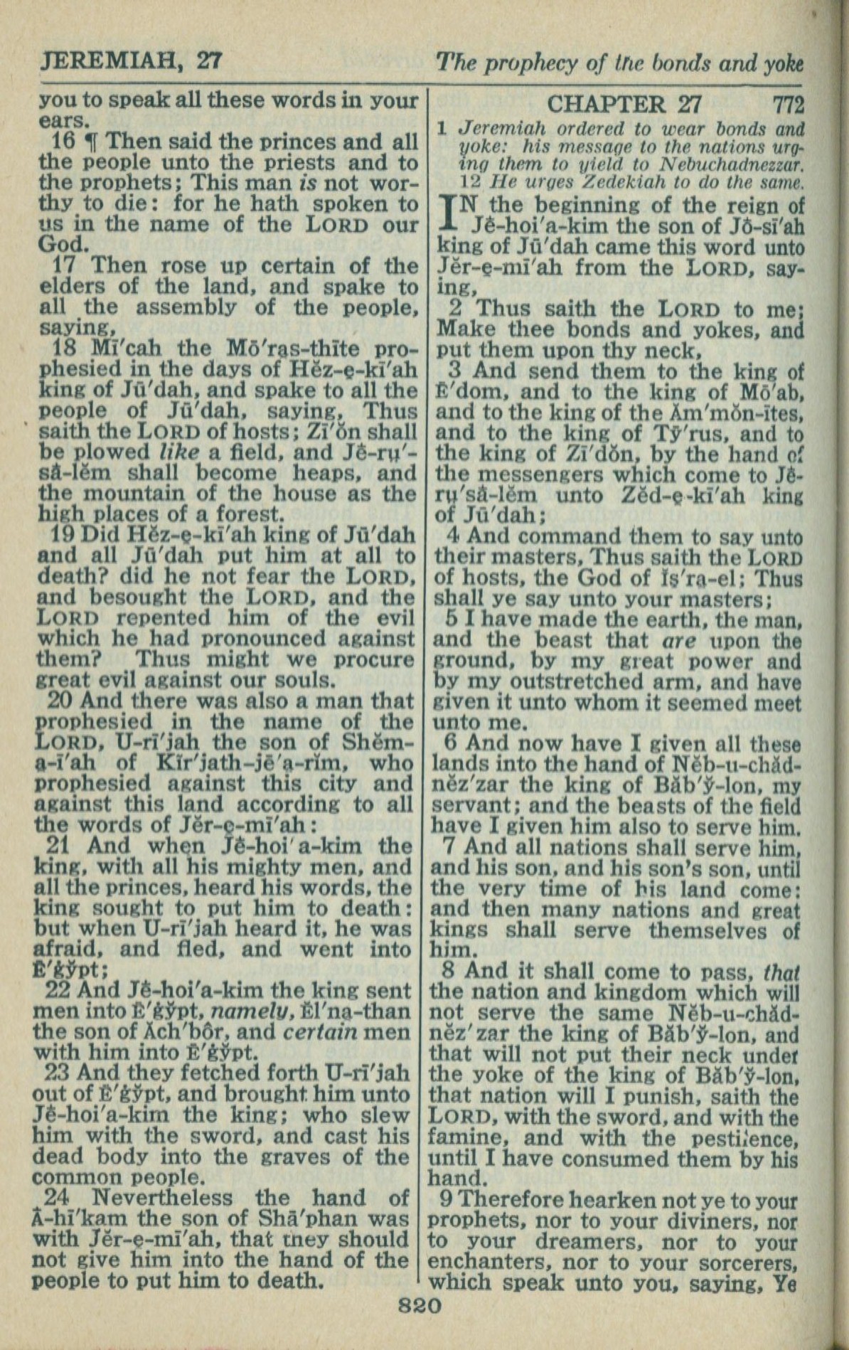 1946年King James Version 耶利米书 26 章 16 节到 27 章 9 节