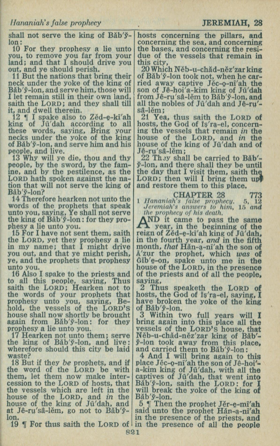 1946年King James Version 耶利米书 27 章 10 节到 28 章 5 节