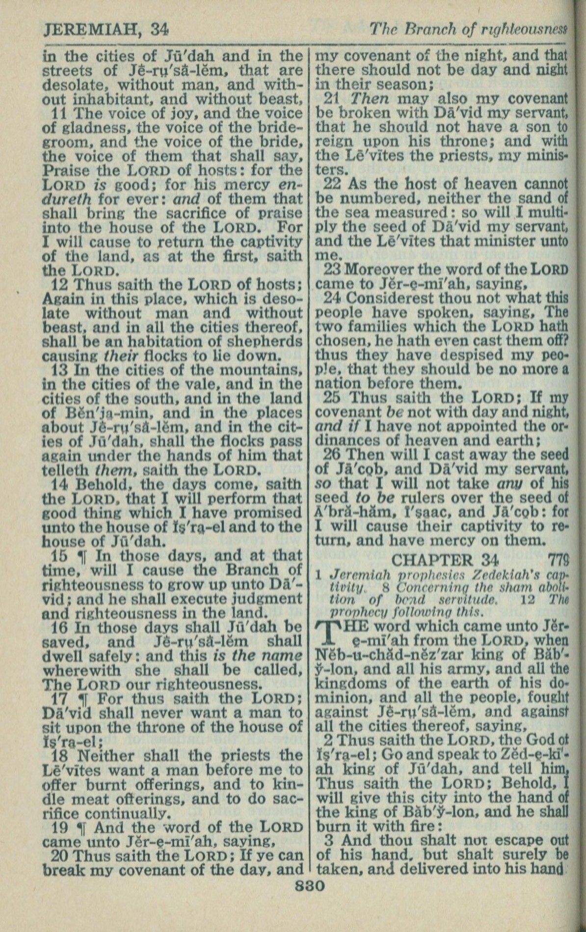 1946年King James Version 耶利米书 33 章 11 节到 34 章 3 节
