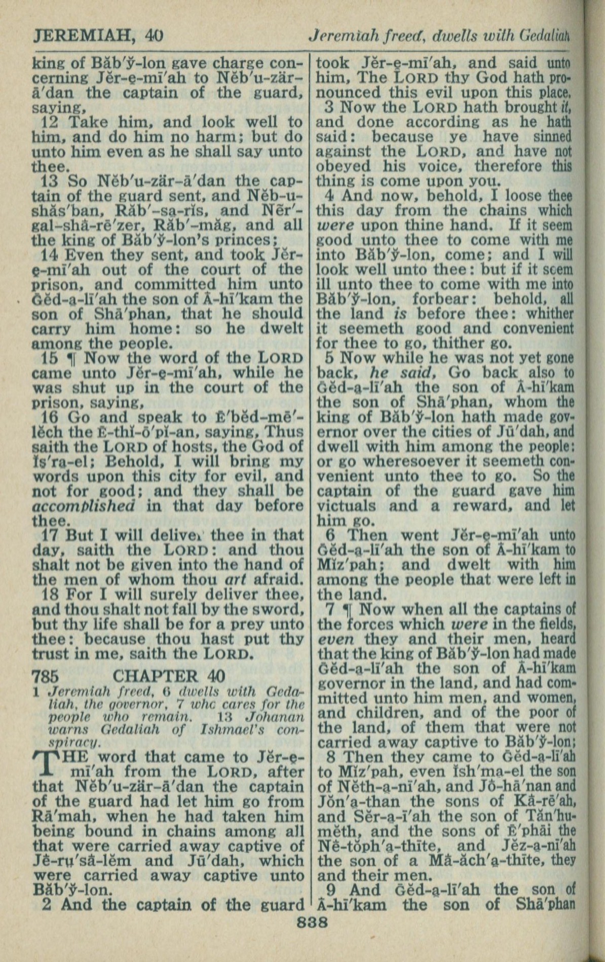 1946年King James Version 耶利米书 39 章 12 节到 40 章 9 节