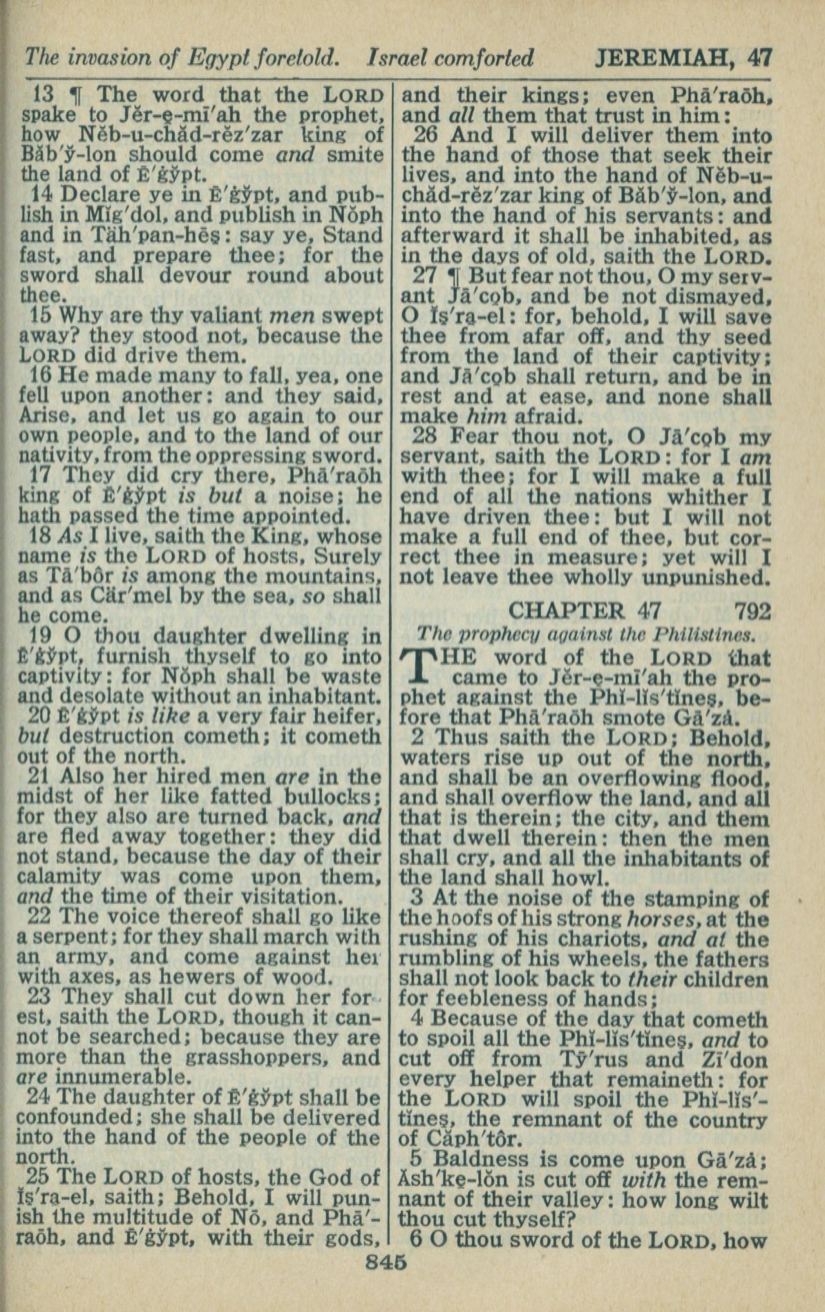 1946年King James Version 耶利米书 46 章 13 节到 47 章 6 节