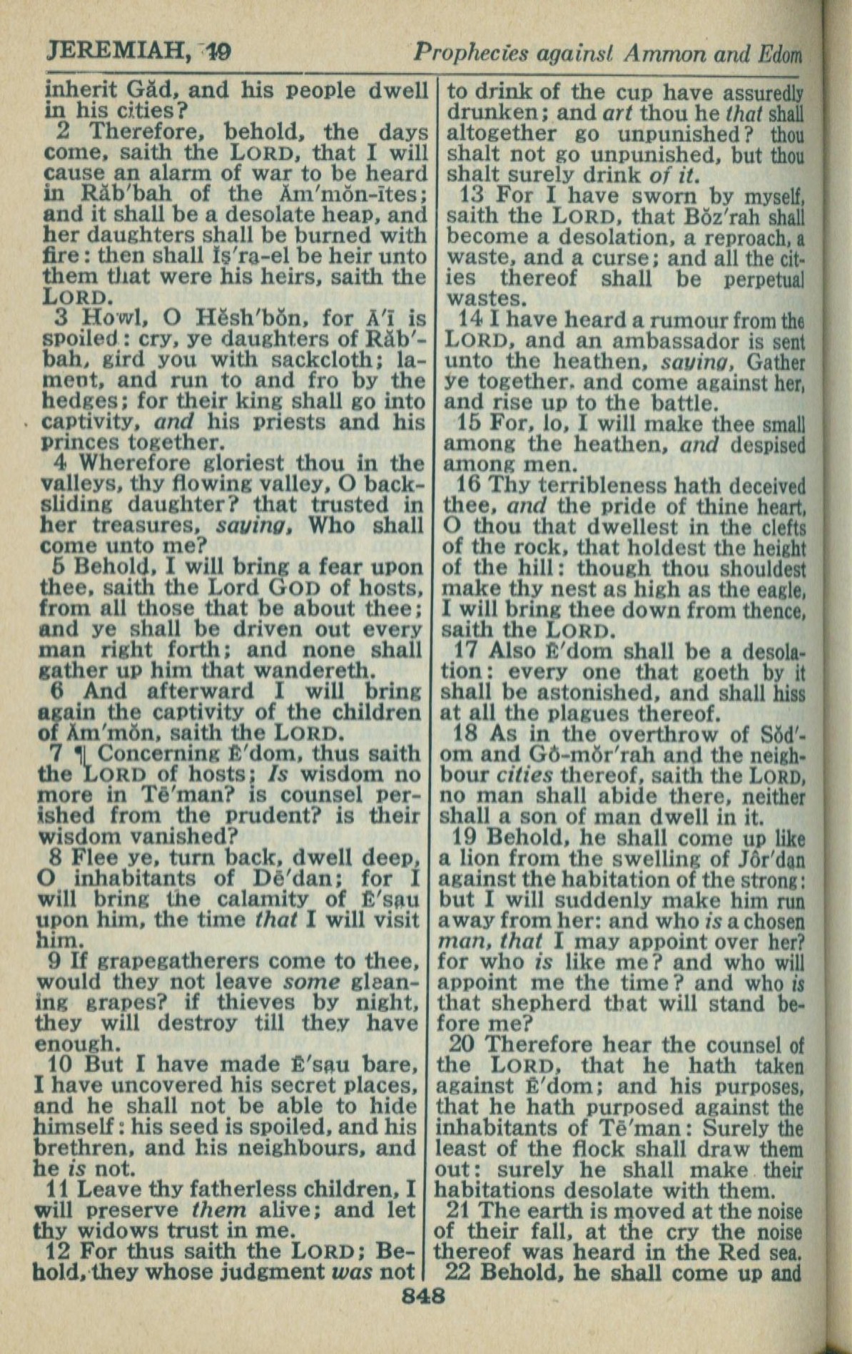 1946年King James Version 耶利米书 49 章 2 节到 49 章 22 节