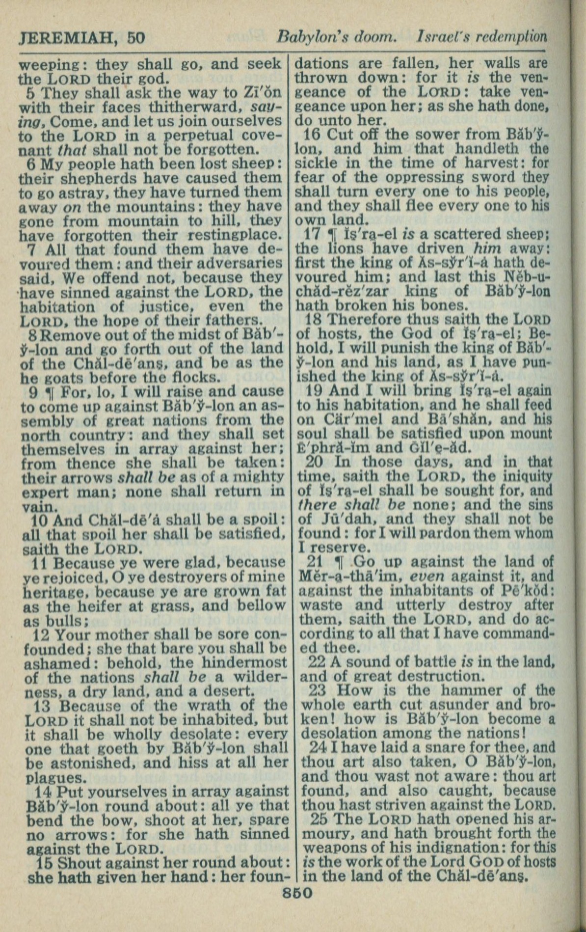 1946年King James Version 耶利米书 50 章 5 节到 50 章 25 节