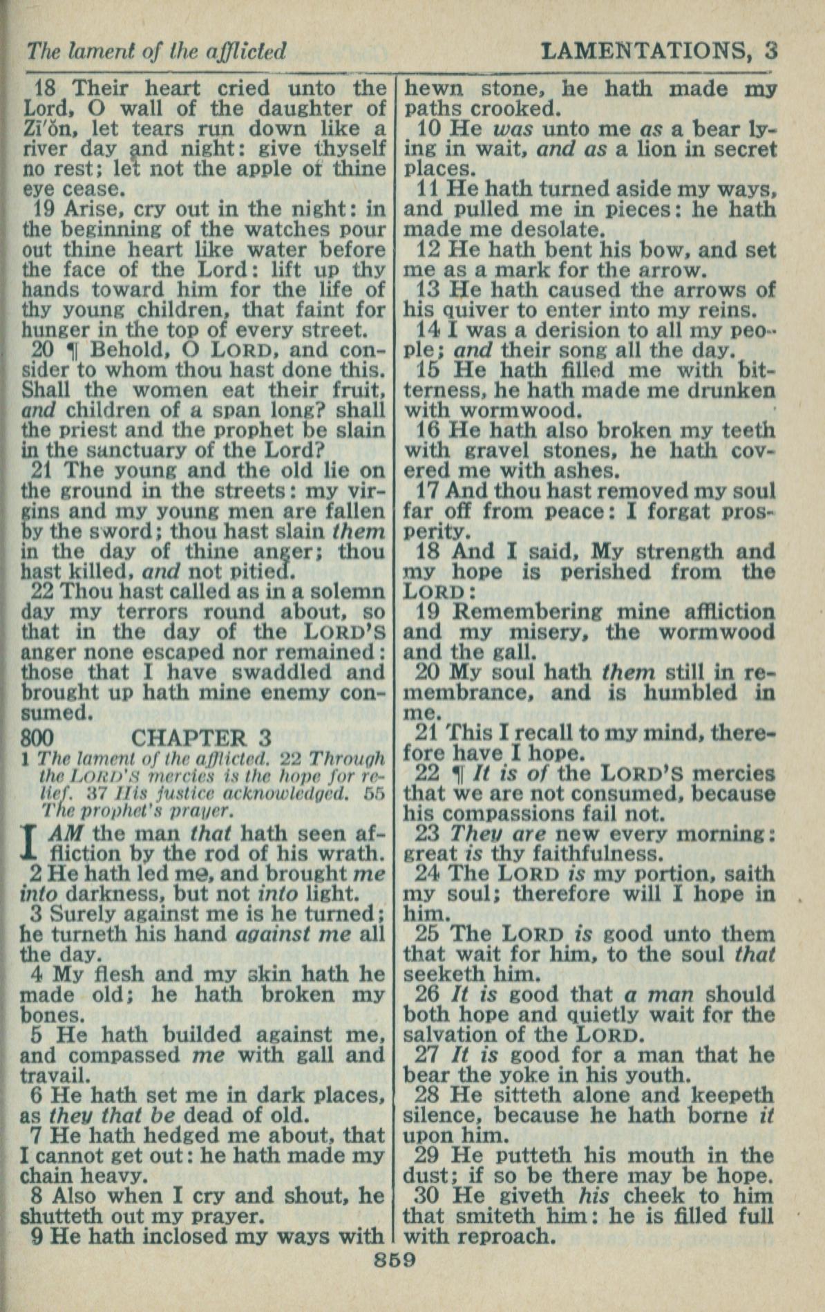 1946年King James Version 耶利米哀歌 2 章 18 节到 3 章 30 节