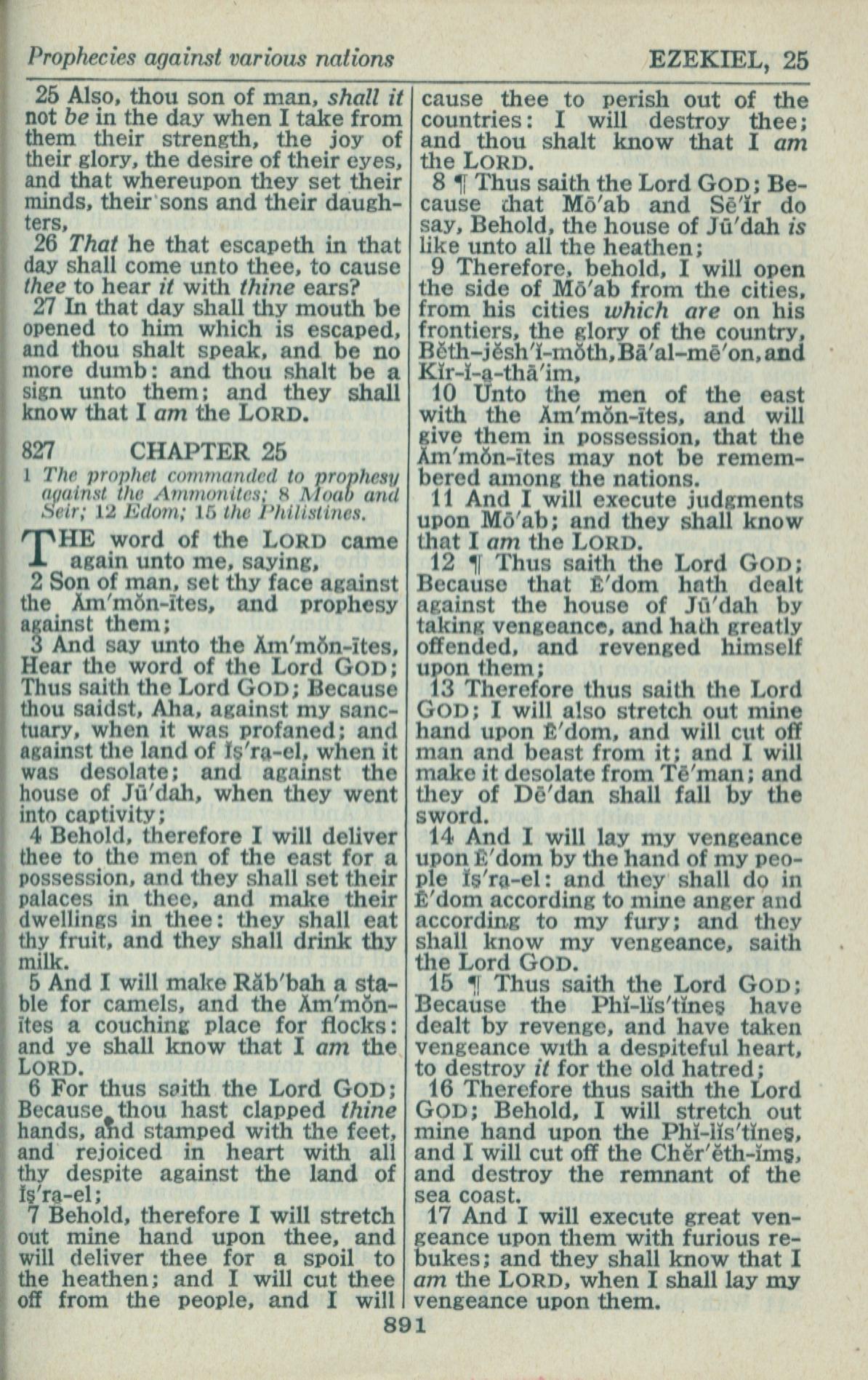 1946年King James Version 以西结书 24 章 25 节到 25 章 17 节