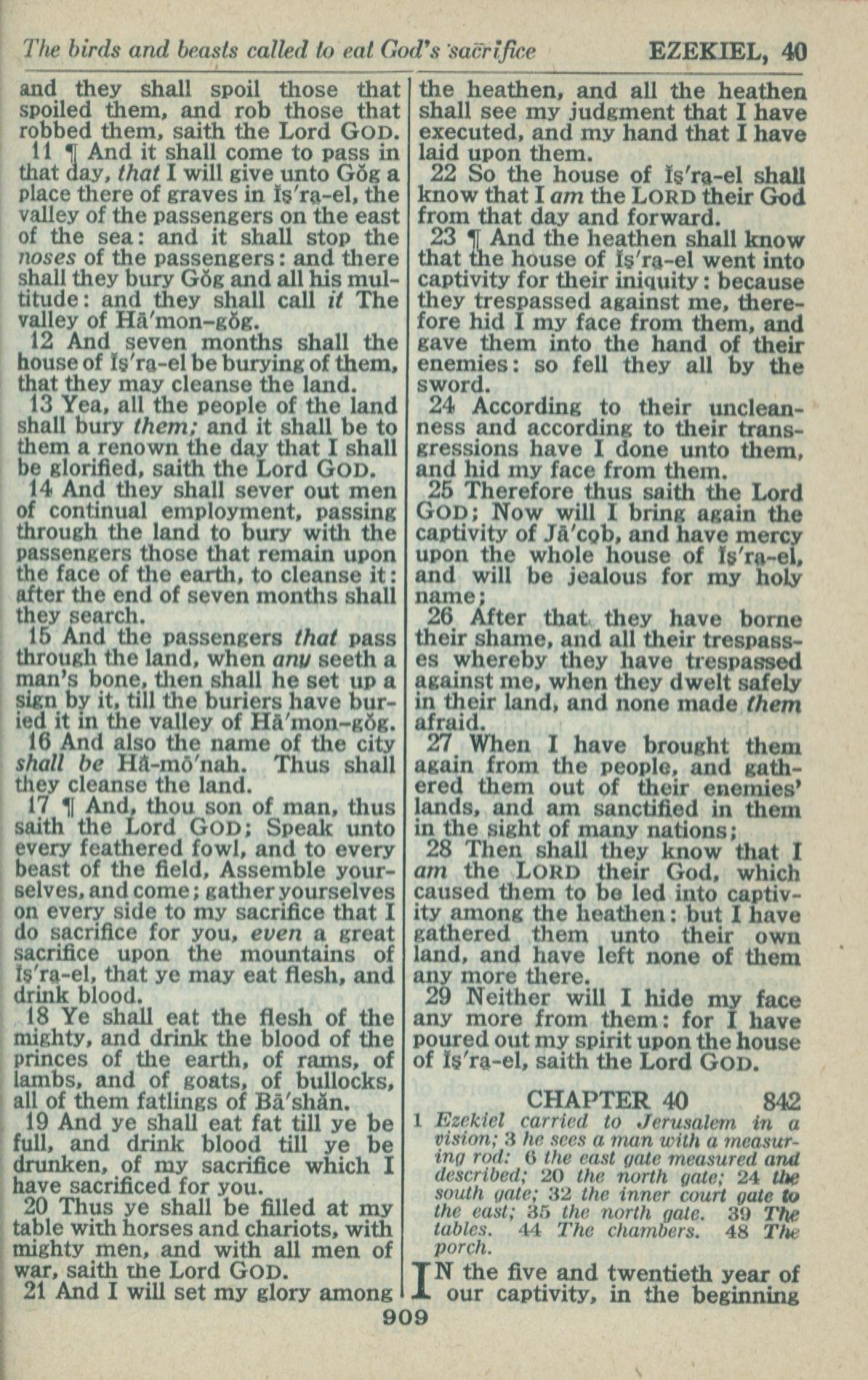 1946年King James Version 以西结书 39 章 11 节到 40 章 1 节