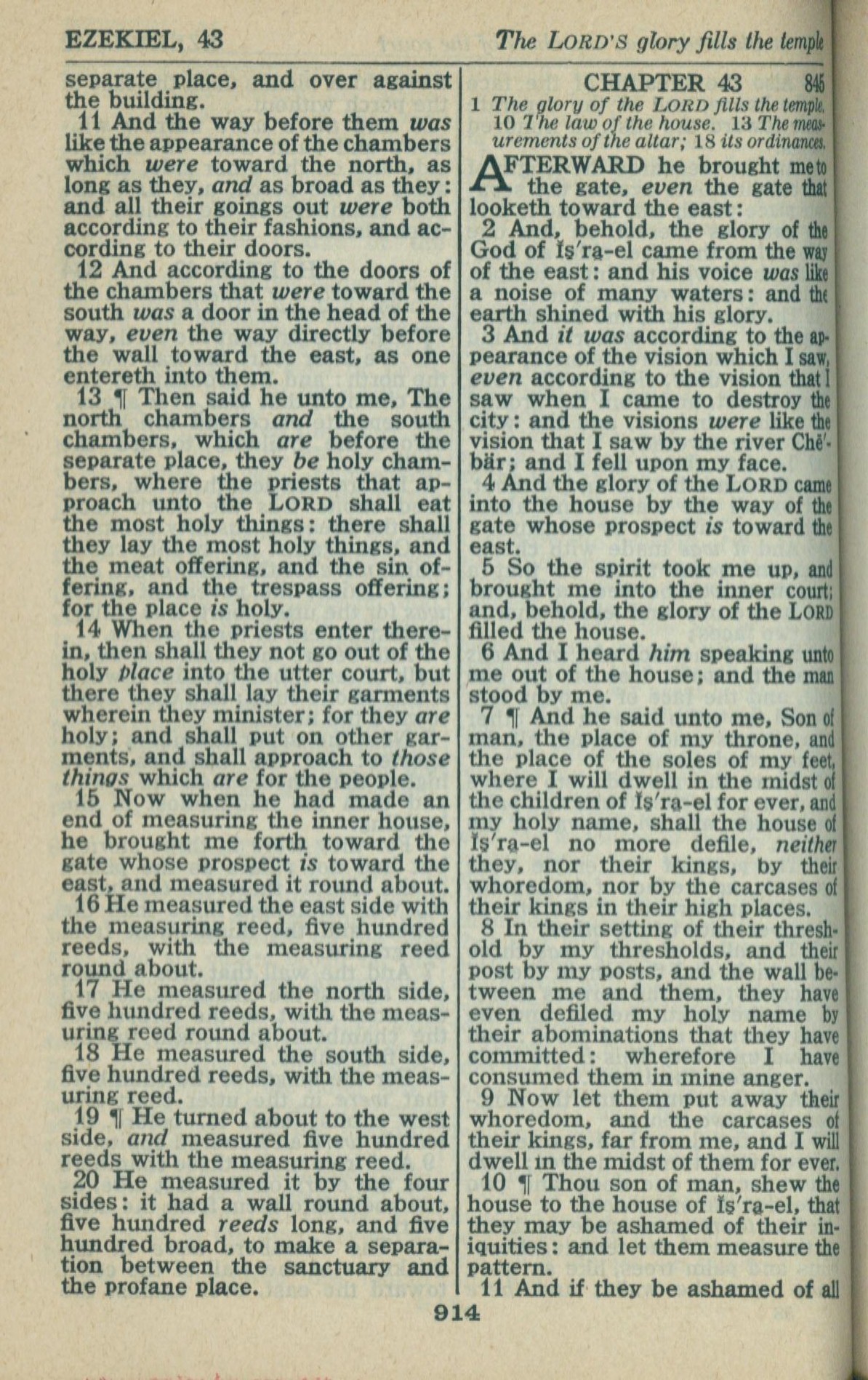 1946年King James Version 以西结书 42 章 11 节到 43 章 10 节