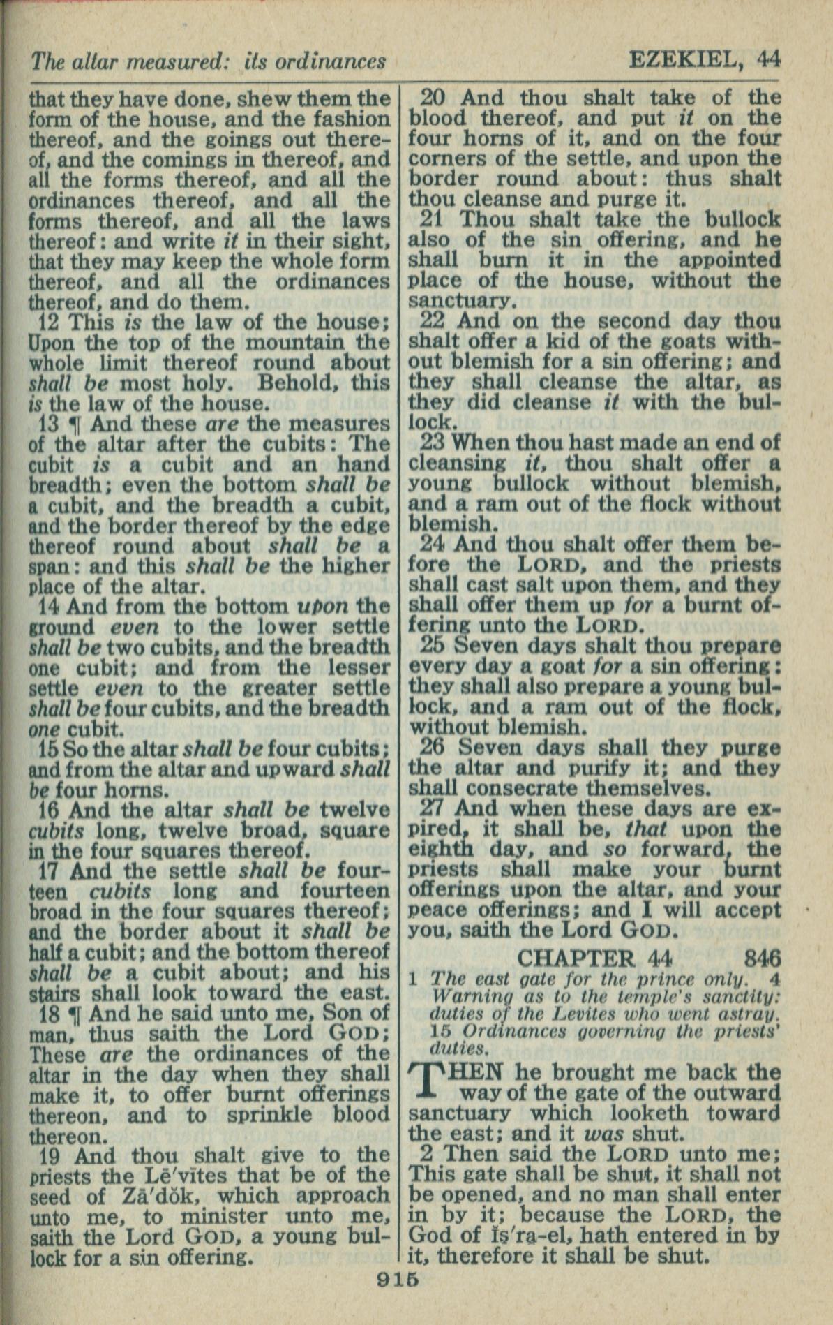 1946年King James Version 以西结书 43 章 11 节到 44 章 2 节