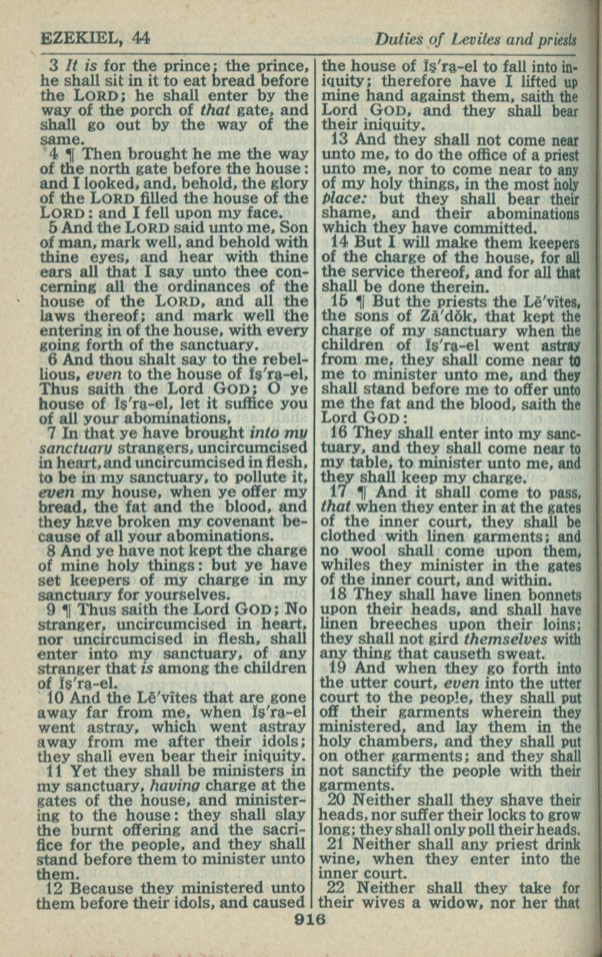 1946年King James Version 以西结书 44 章 3 节到 44 章 22 节